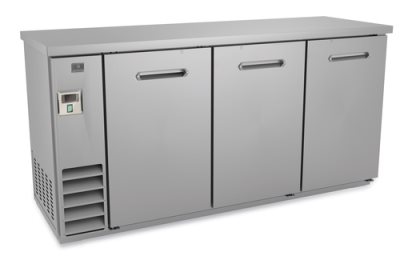 (738307) Back Bar Cooler, 72″W, self-contained side mounted refrigeration, 20.8 cu. ft. capacity, (3) solid doors with locks, (6) vinyl-coated steel shelves, auto defrost, 304 stainless steel worktop, stainless steel interior, galvanized & stainless steel exterior, R290 Hydrocarbon refrigerant, 1/4 HP, 115v/60/1-ph, 0.3kW, 3 amps, NEMA 5-15P, cETLus, ETL-Sanitation